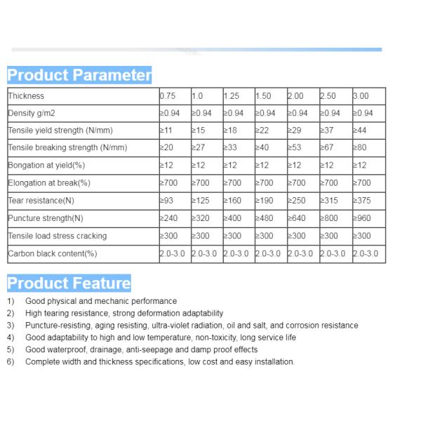 Our high density polyethylene (HDPE) geomembranes provide an impermeable barrier against a wide range of solids and liquids. They exhibit excellent chemical and UV resistance,impermeability, and high yield and welded seam strengths, which is widely used as the liner.(model according to the thickness of distinction, different thickness and different price) production capacity: thickness:0.1 mm -6 mm, width: 1-8 meters. It is suitable for seepage control in special industries, and is widely used for aquaculture, seepage control, reservoirs or sewage treatment ponds.